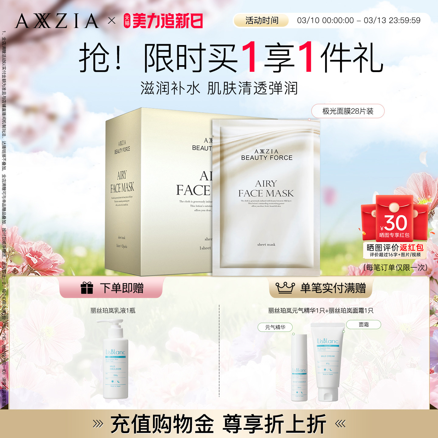 AXXZIA晓姿气感极光面膜补水保湿嘭弹提亮淡化细纹干纹滋养贴片