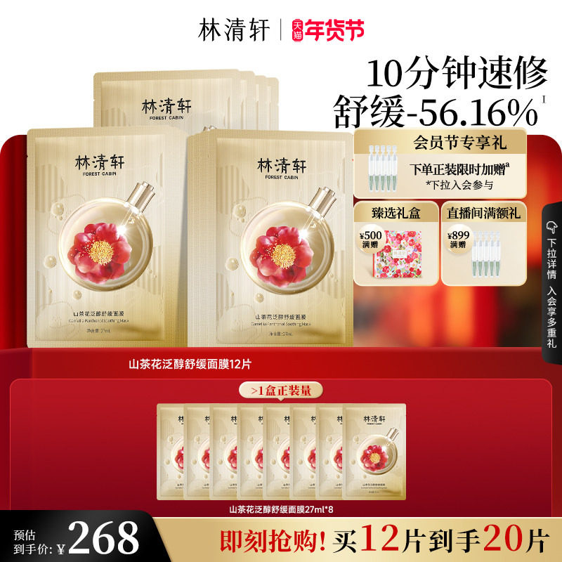 【新年礼物】林清轩山茶花泛醇舒缓面膜速修保湿修护淡纹抗皱正品