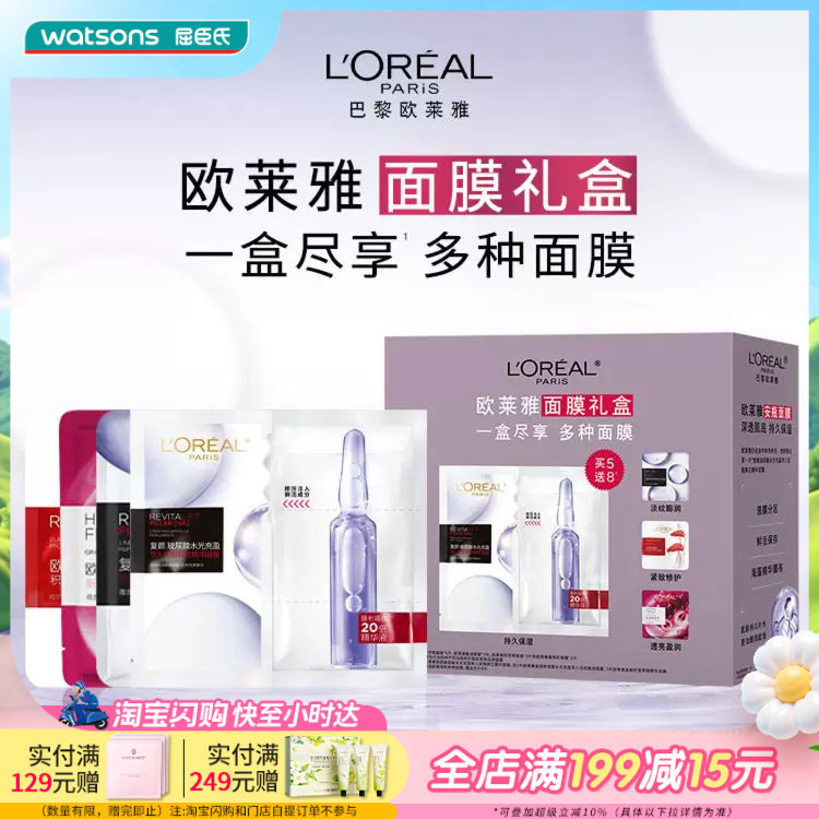 屈臣氏欧莱雅面膜礼盒13片补水保湿水光充盈