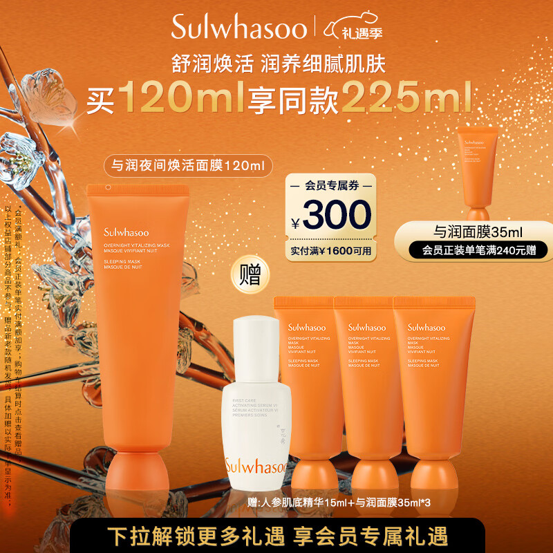 雪花秀与润夜间焕活睡眠面膜120ml免洗补水改善暗沉透亮圣诞礼物
