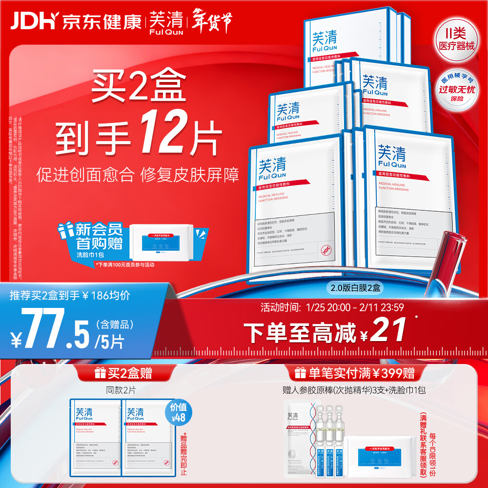 芙清医用促愈敷料II面膜型2盒10片械字白膜创面愈合项目术后痤疮皮炎