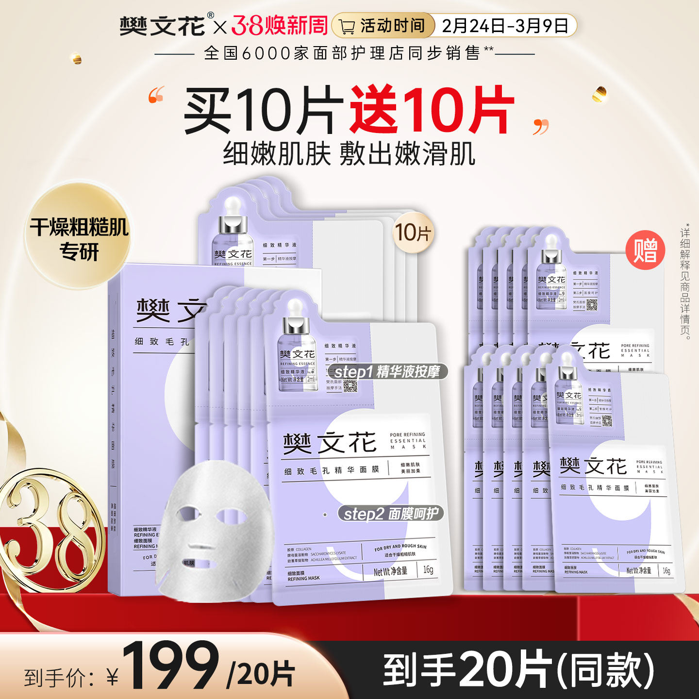 【王一博代言】C咖1+1双层面膜补水祛痘舒缓泛红少留印官方正品