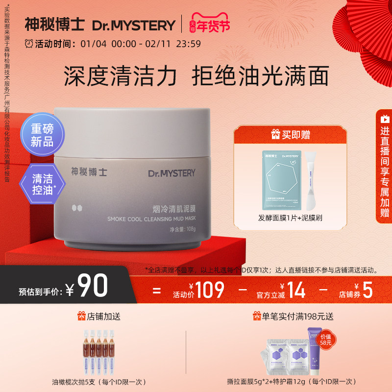 神秘博士烟冷清肌泥膜温和清洁控油补水保湿涂抹面膜官方旗舰店