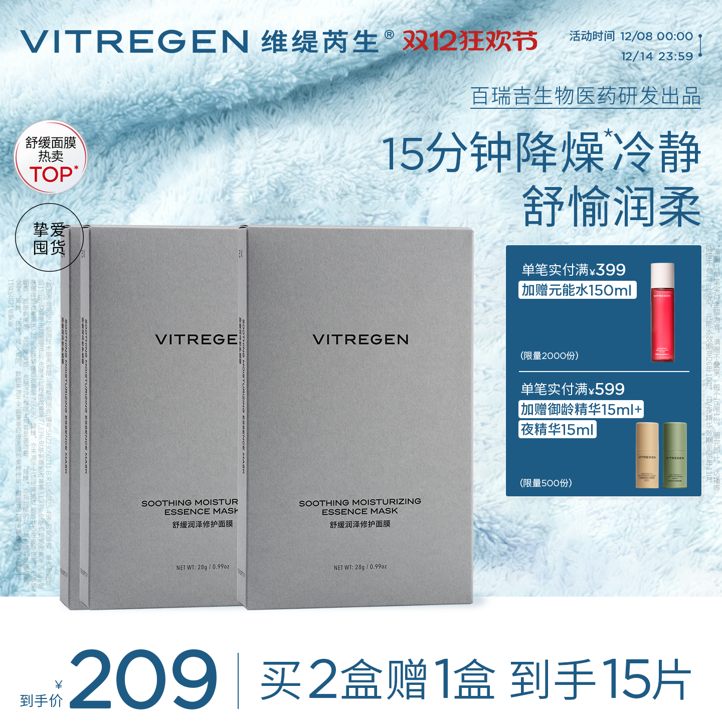 VITREGEN维缇芮生舒缓润泽冷静面膜补水褪红贴片敏肌套装保湿修护