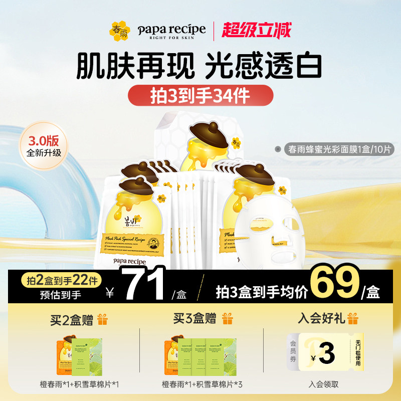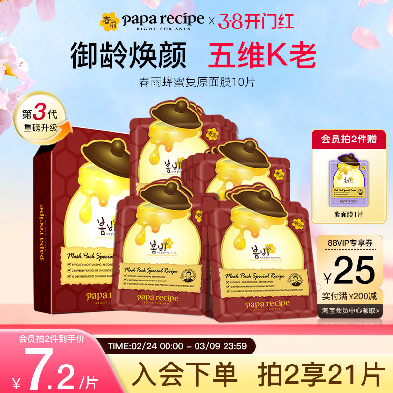 韩国paparecipe红春雨蜂蜜复原油敷面膜人参保湿紧致官方正品10片