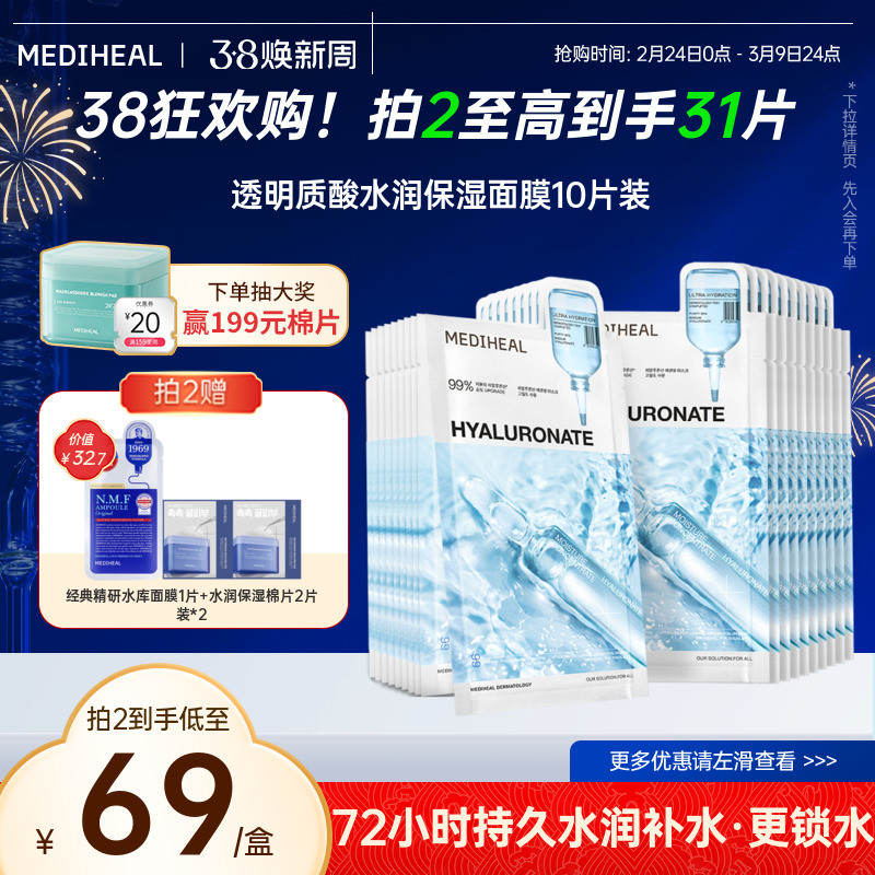 【新品3.0升级】美迪惠尔透明质酸水润呵护保湿补水贴片面膜10片