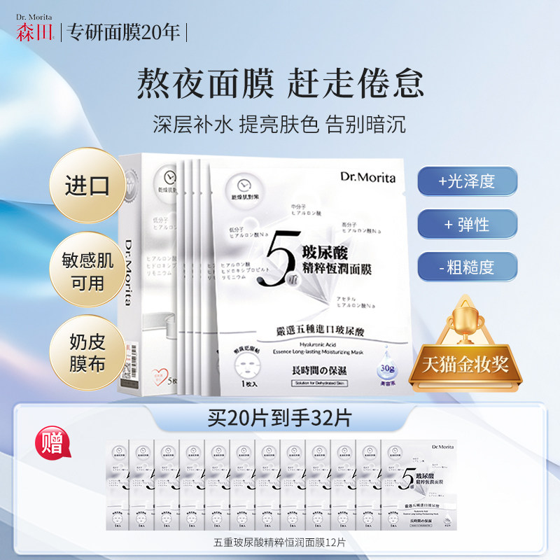 透真玻尿酸b5面膜蚕丝补水保湿舒缓修护收缩毛孔提亮女男士专用