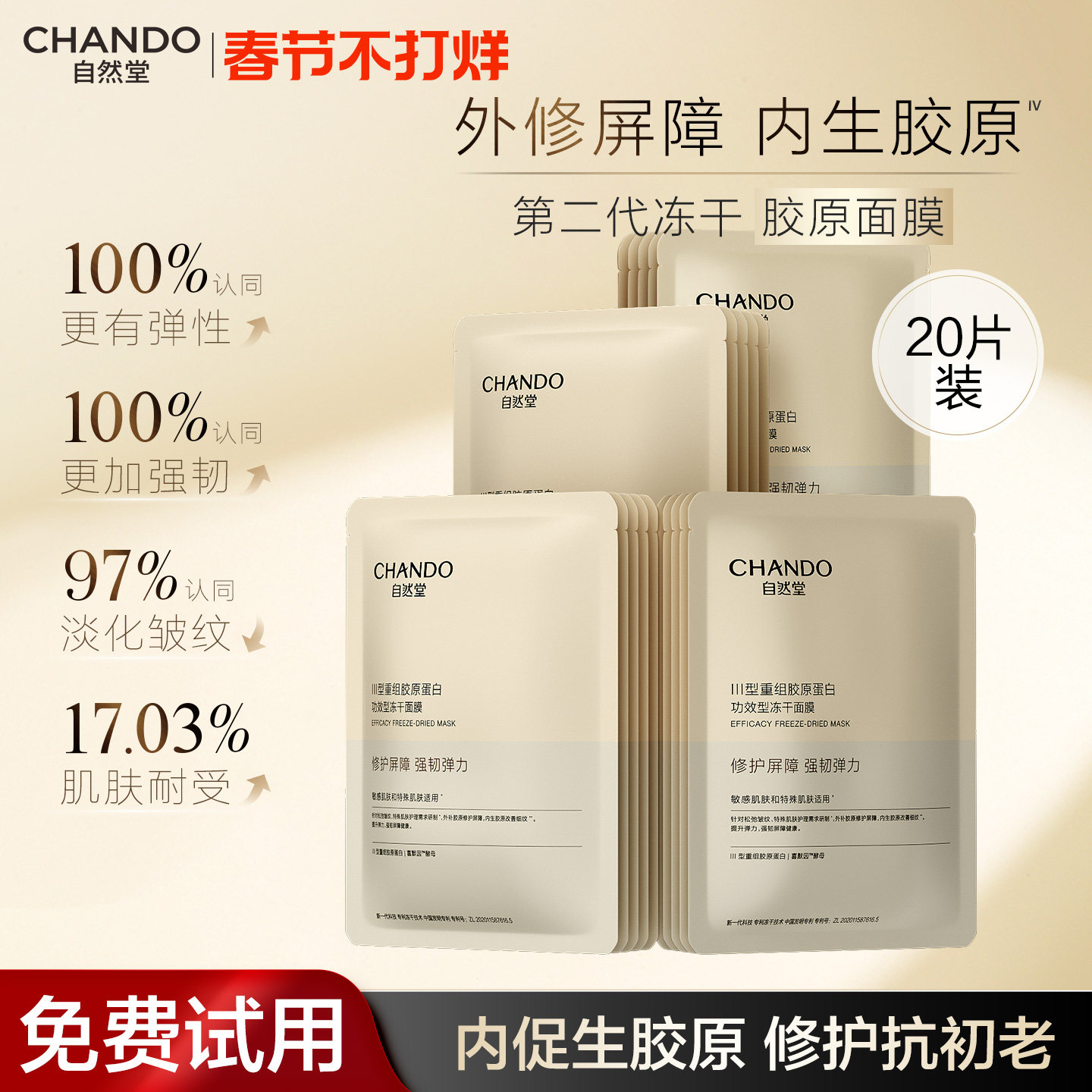 自然堂冻干胶原面膜修护抗皱紧致敏感肌胶原蛋白补水保湿官方正品
