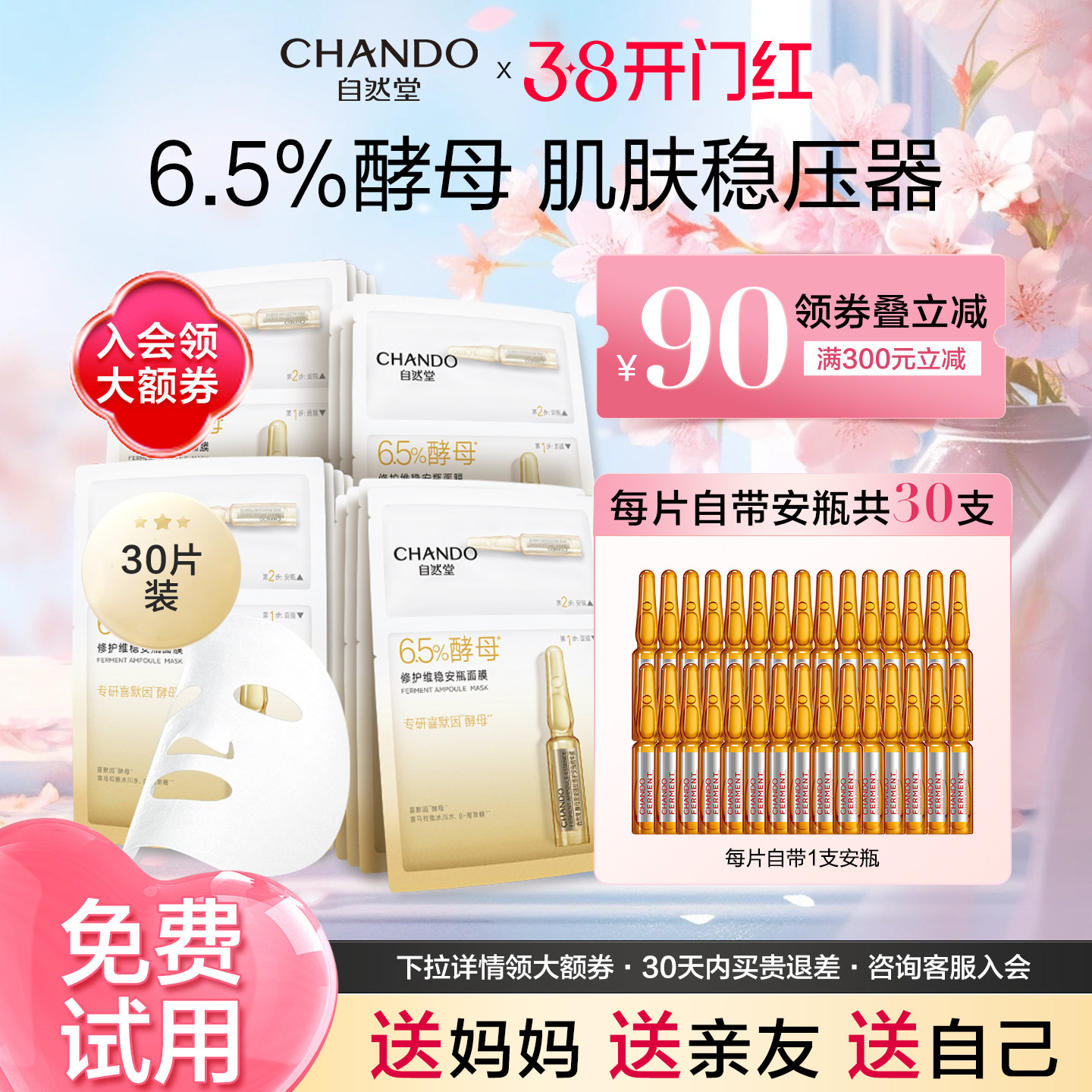 自然堂6.5%喜默因酵母安瓶面膜修护敏感肌强韧肌底修护女旗舰店