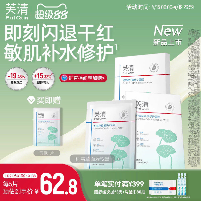 芙清补水保湿面膜积雪草修护舒缓晒后泛红维稳屏障敏感肌适用