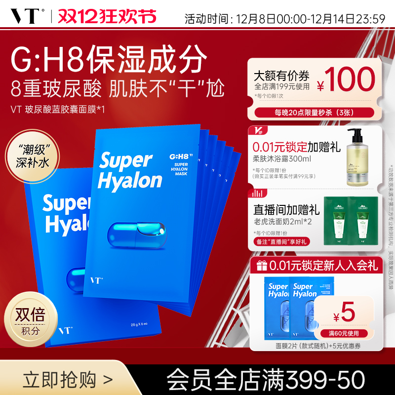 VT薇缔玻尿酸蓝胶囊面膜补水保湿服帖柔软膜布滋润肌肤正品官方店