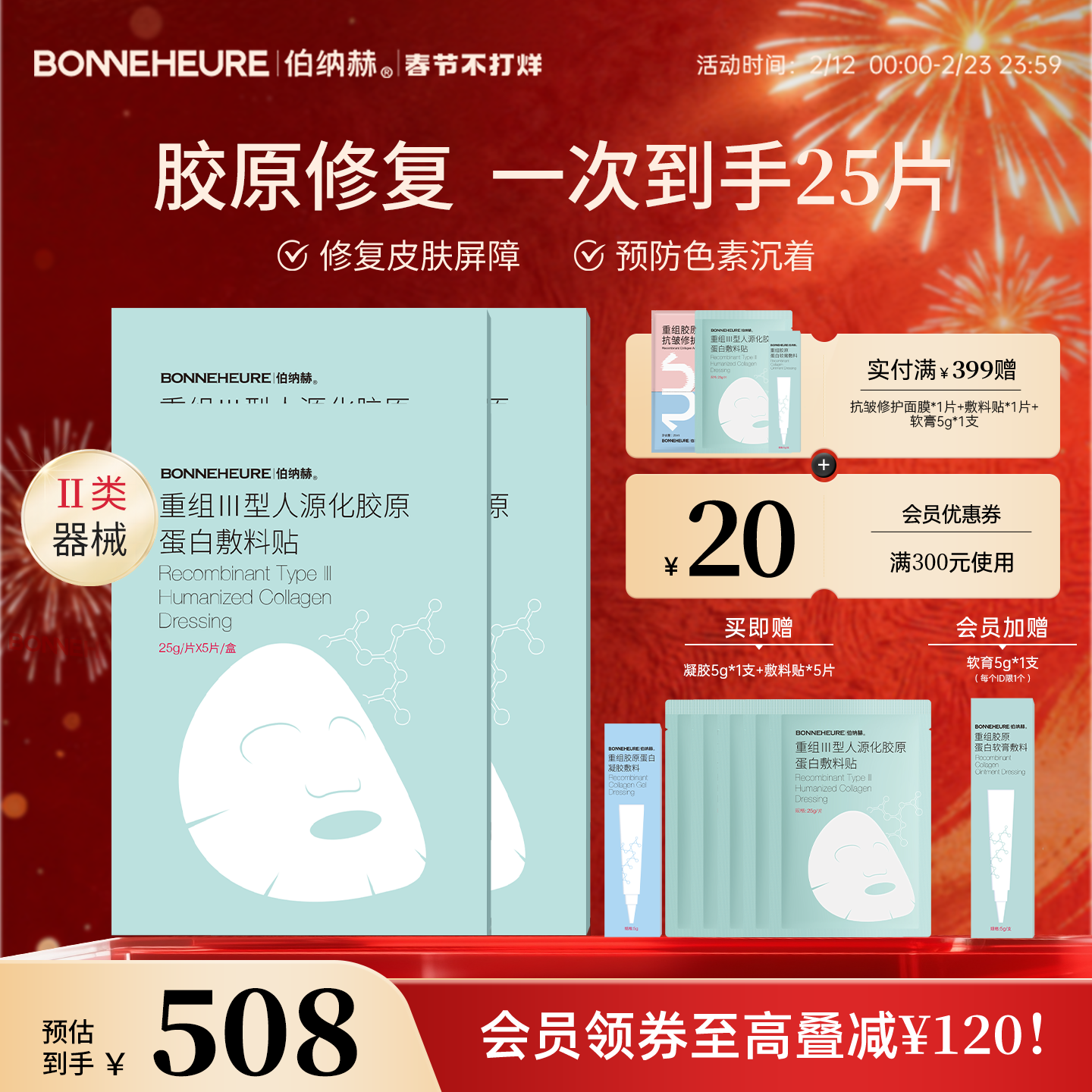 伯纳赫 医用重组人源胶原蛋白敷料贴 修复面部皮肤屏障医美非面膜