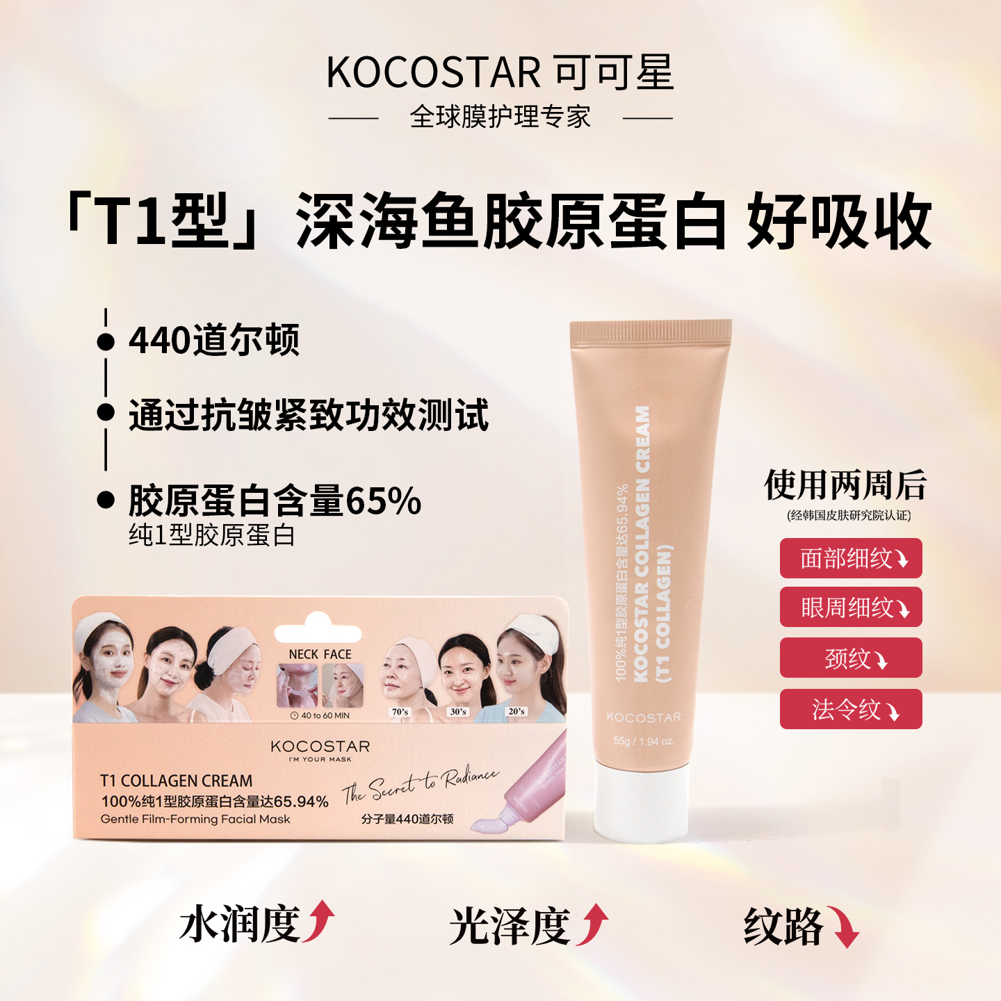 可可星胶原蛋白面膜霜涂抹式抗皱紧致水润保湿滋润保湿面膜