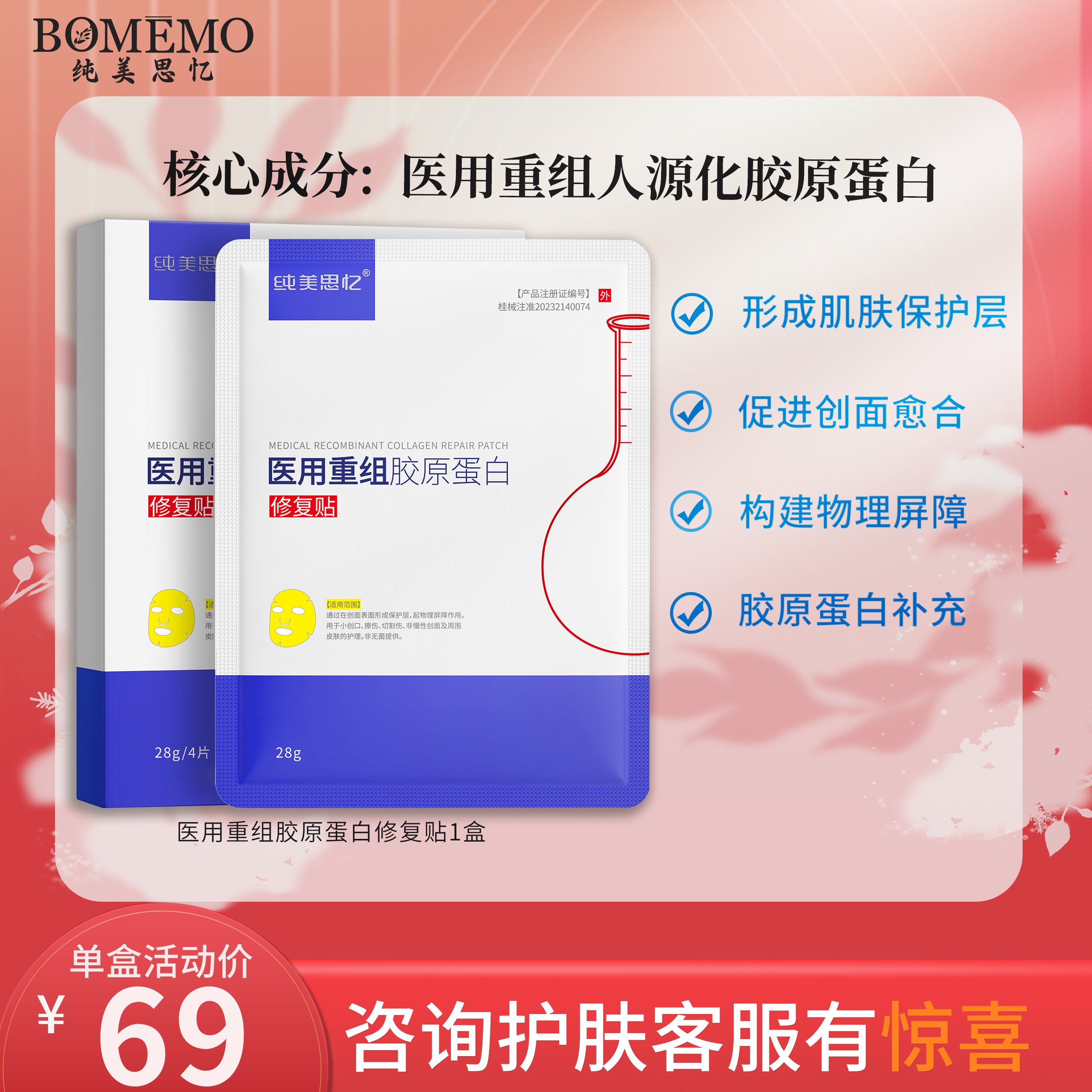 黎兰佳医用敷贴重组胶原蛋白械字术后敏红肌修复银盒敷料非面膜
