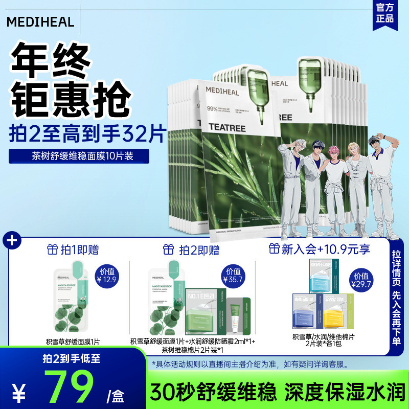 李佳琦推荐玻尿酸补水面膜贴10片保湿天猫U选优先u试先用大牌入口
