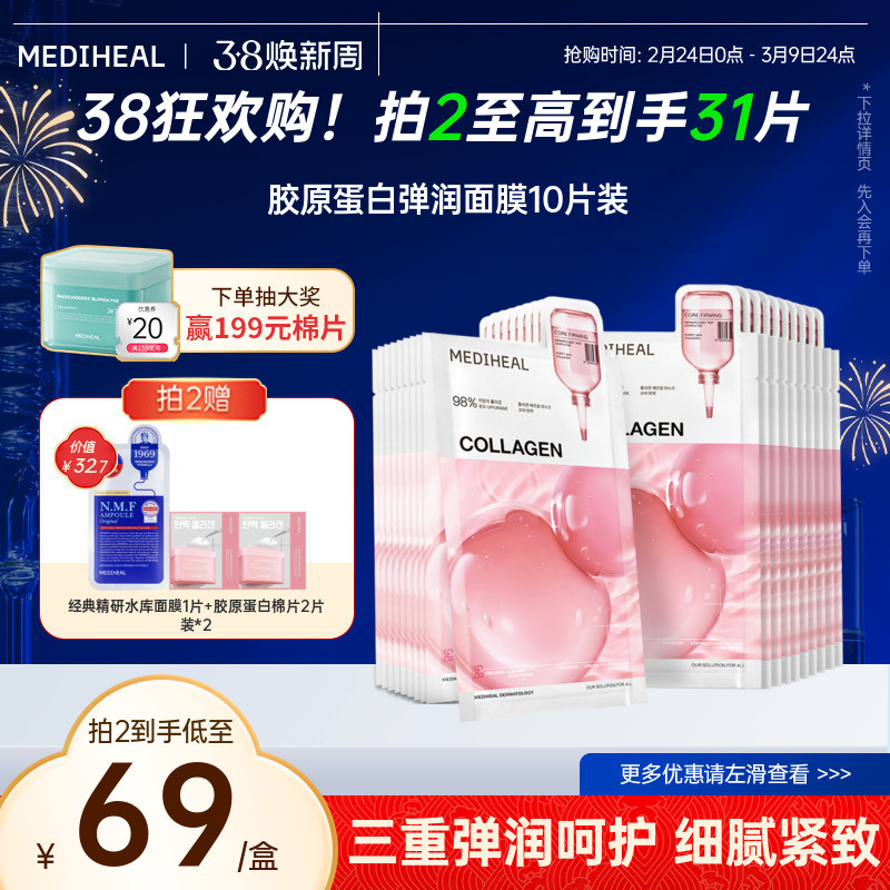 【新品3.0升级】美迪惠尔胶原蛋白弹润细腻紧致纹理精华补水面膜