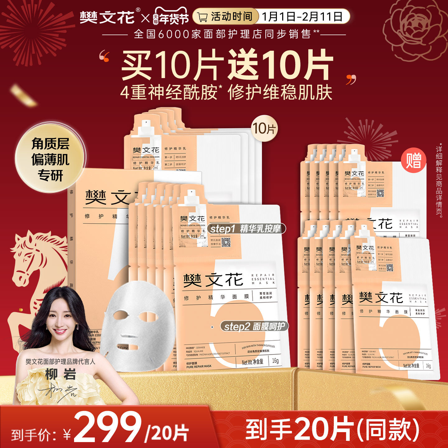 10片打包价!珀莱雅双抗面膜2.0版 补水保湿提亮肤色一片就搞定
