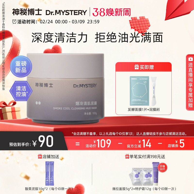hfp果酸清洁面膜去黑头水杨酸涂抹面膜灰白泥深层清洁泥膜男女
