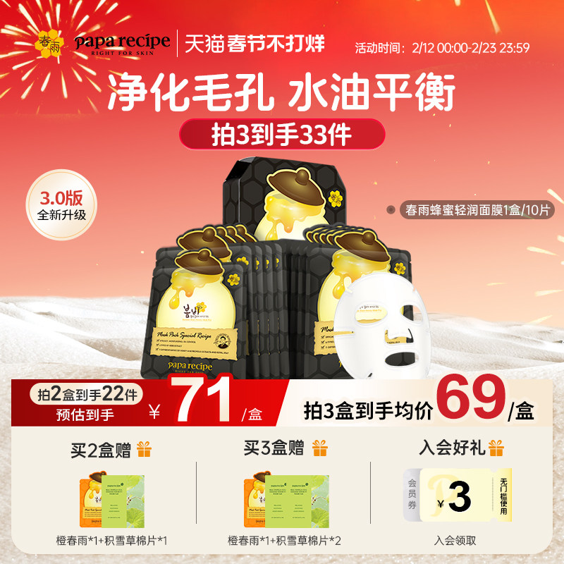 【入会减40】韩国黄春雨蜂蜜补水积雪草舒缓面膜棉片官方正品旗舰