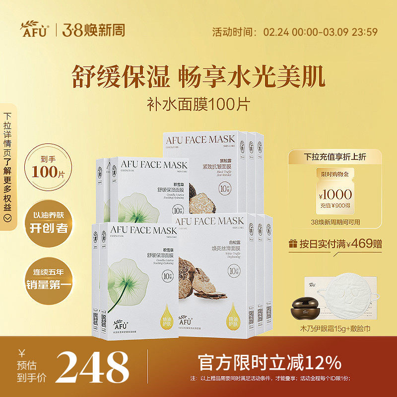 阿芙补水面膜玫瑰提亮积雪草面膜保湿舒缓面部护理套装100片夏季