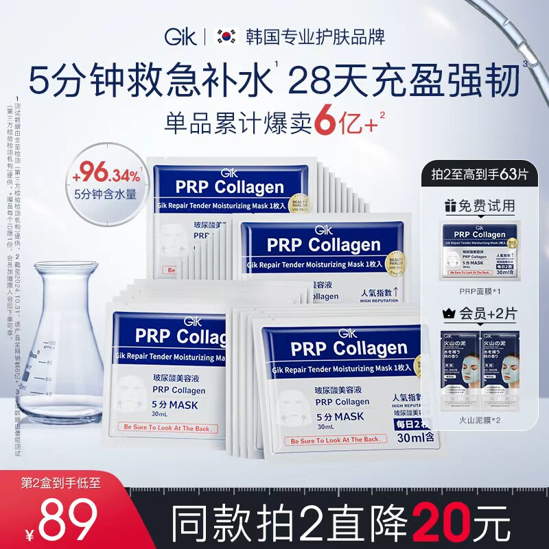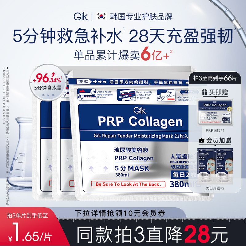 GikPrp胶原面膜五分钟即时救急补水韩国保湿修护贴片韩国原装进口