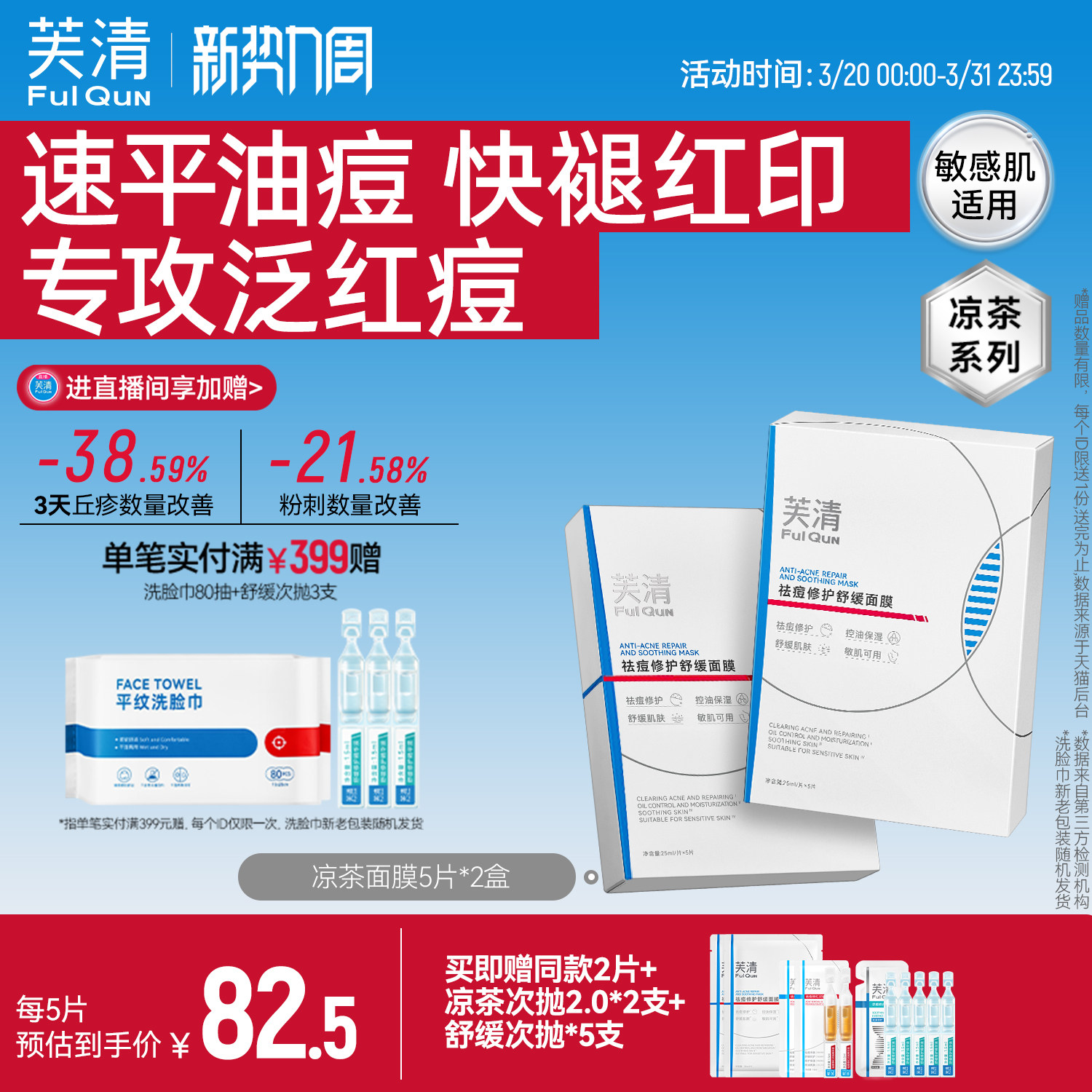 芙清凉茶面膜2.0敏感肌修护脸部泛红舒缓维稳补水保湿祛痘面膜