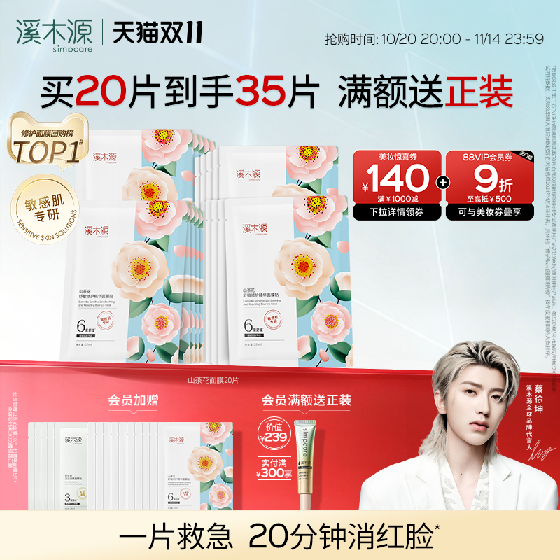 【双11抢购】山茶花面膜补水保湿舒缓修护敏感肌奶皮贴片面膜女