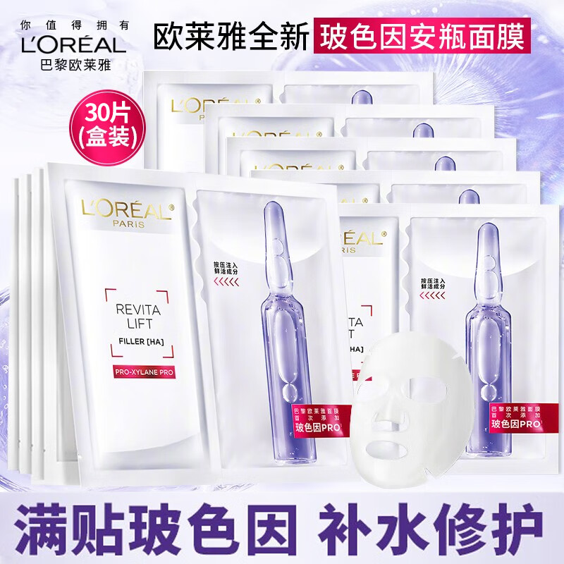 欧莱雅(LOREAL)复颜玻尿酸安瓶玻色因面膜保湿深层补水抗皱提拉紧致面膜女护肤品 复颜玻尿酸安瓶玻色因面膜装30片装