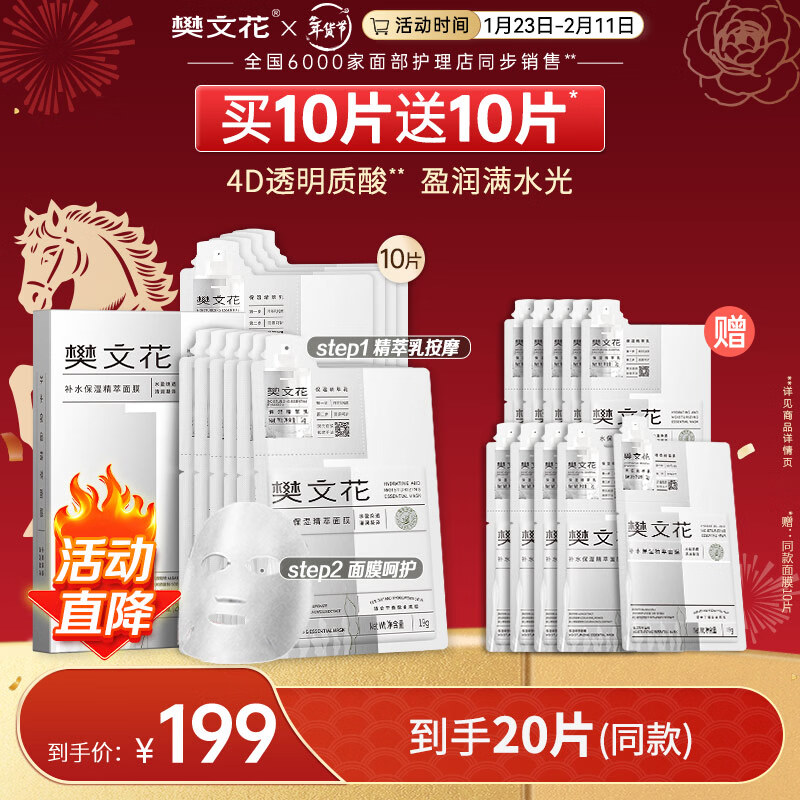 樊文花1号补水保湿精萃面膜舒缓紧致肌肤贴片式保湿面膜护肤情人节礼物 10片装
