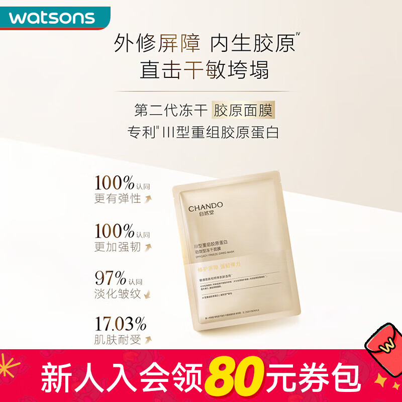自然堂情人节礼物屈臣氏 自然堂III型重组胶原蛋白修护冻干面膜650mg 修护冻干面膜650mg 10片