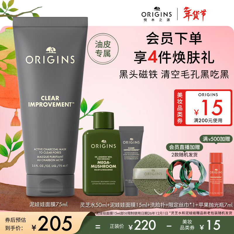 悦木之源(Origins)泥娃娃面膜75ml 清洁毛孔活性炭去黑头涂抹泥膜新年礼物送女友