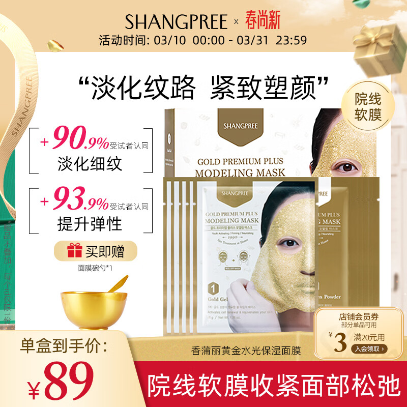 SHANGPREE黄金水光面膜5组补水男女护肤适用 抗皱纹紧致保湿SPA 韩国进口