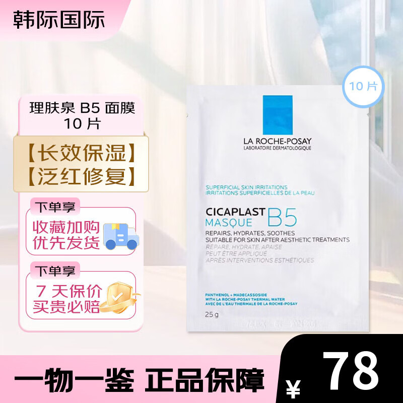 理肤泉B5面膜PRO 25g 多效补水保湿修复舒缓敏感肌晒后泛红修护贴片面膜 【日常补水】B5面膜 10片