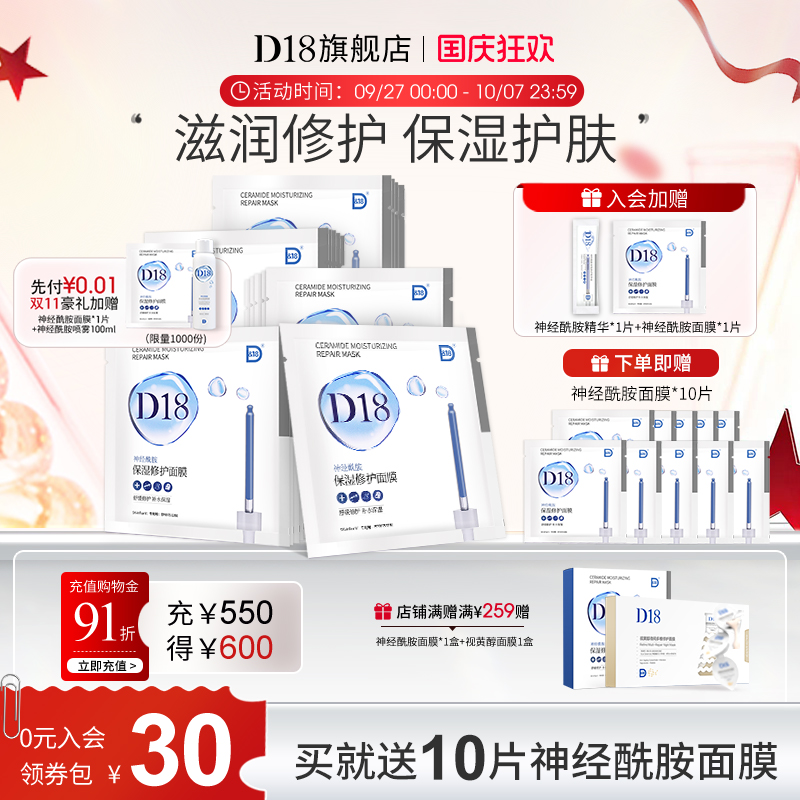 d18神经酰胺面膜10盒保湿补水锁水维稳毛孔护理屏障女旗舰店