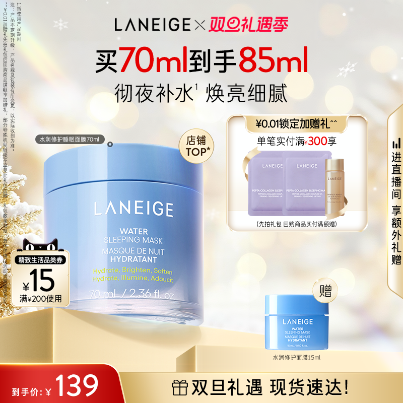 【圣诞礼物】兰芝水润睡眠面膜70ml保湿修护焕亮细腻涂抹免洗
