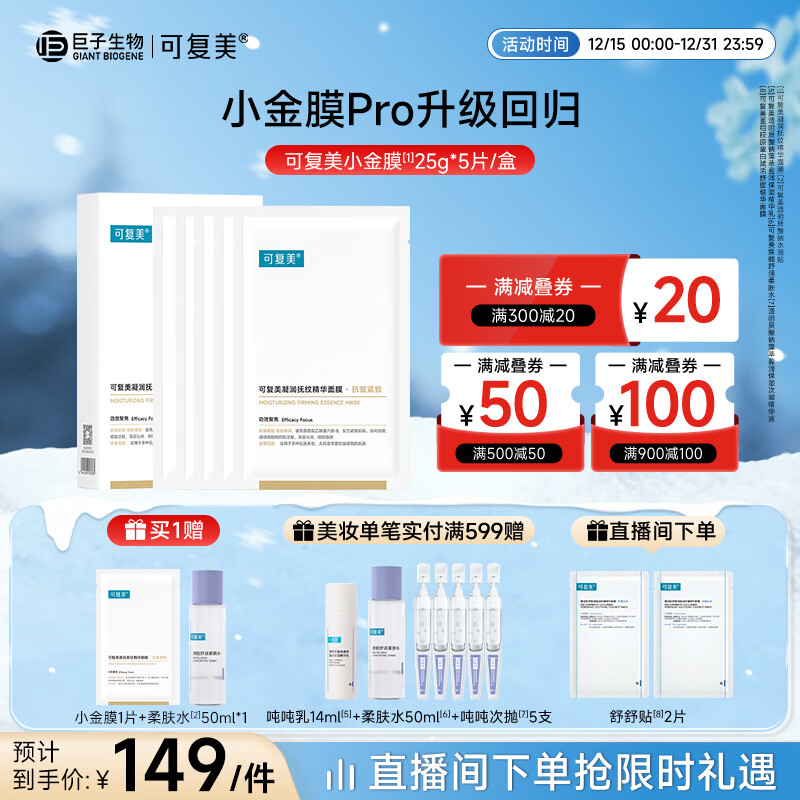 可复美凝润抚纹精华面膜25g*5片 细腻弹润 深层沁润 小金膜圣诞节礼物