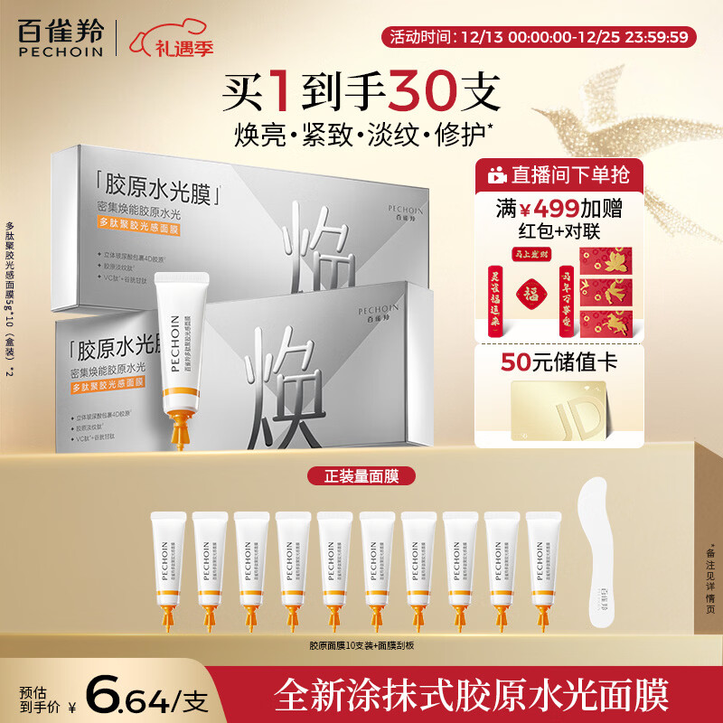 百雀羚(PECHOIN)多肽聚胶光感面膜盒装*2胶原水光抗皱补水免洗品质国货圣诞礼物