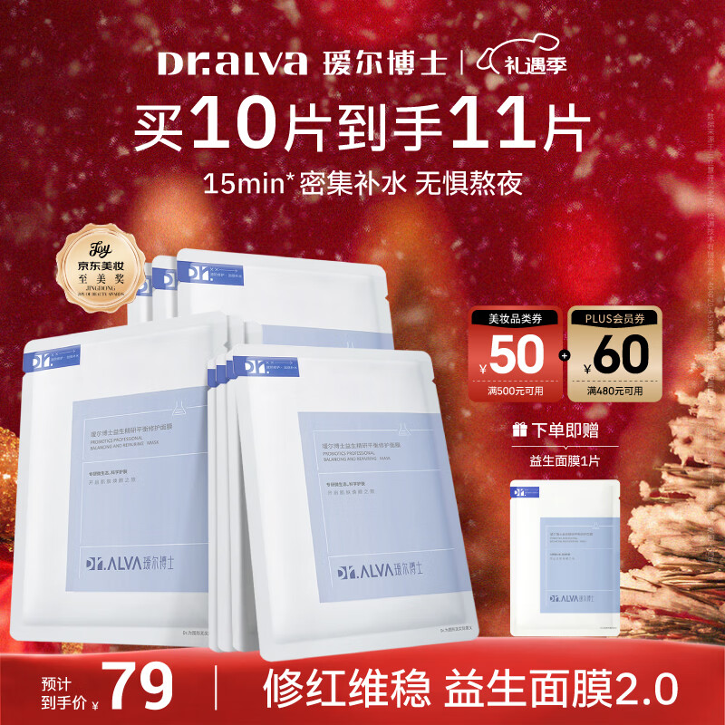 瑷尔博士益生精研平衡修护面膜1盒装保湿舒缓熬夜男女士护肤品圣诞礼物