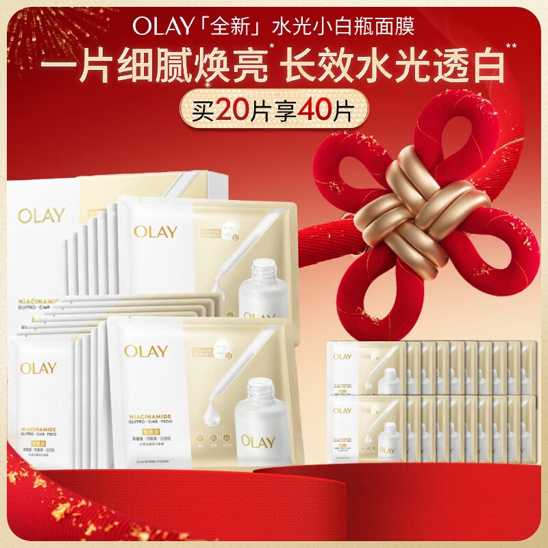 玉兰油(OLAY)全新水光小白瓶面膜20片补水美白去黄提亮肤色改善暗沉圣诞礼物女