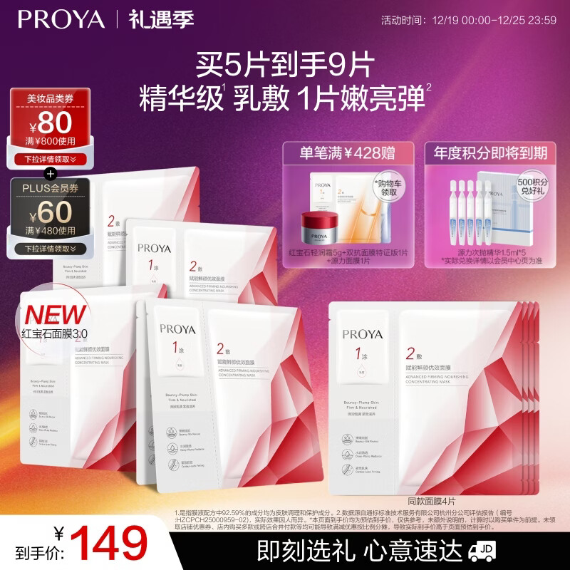 珀莱雅红宝石面膜3.0干皮补水焕亮肌肤紧致淡纹 护肤品 5片装 生日礼物