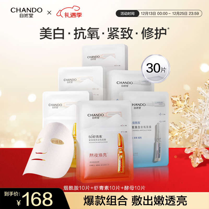 自然堂安瓶面膜 补水保湿美白烟酰胺面膜抗皱舒缓熬夜救星生日礼物 【超值必囤】安瓶面膜 30片 组合装