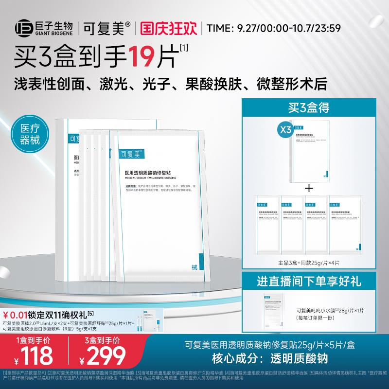 【预售】可复美医用透明质酸钠修复贴敷料创面护理非面膜5片/盒