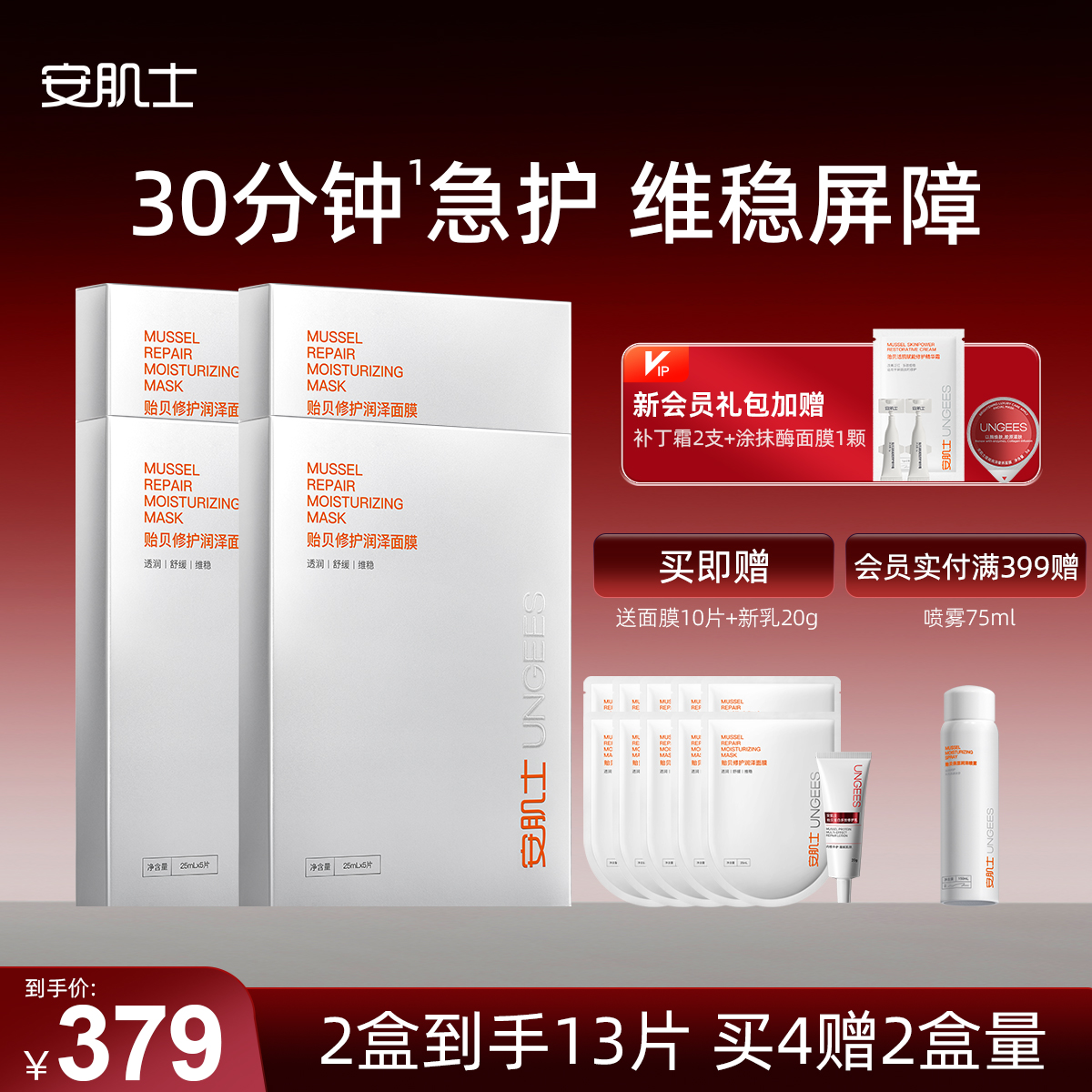 安肌士贻贝面膜修护屏障保湿补水舒缓温和敏感肌可用
