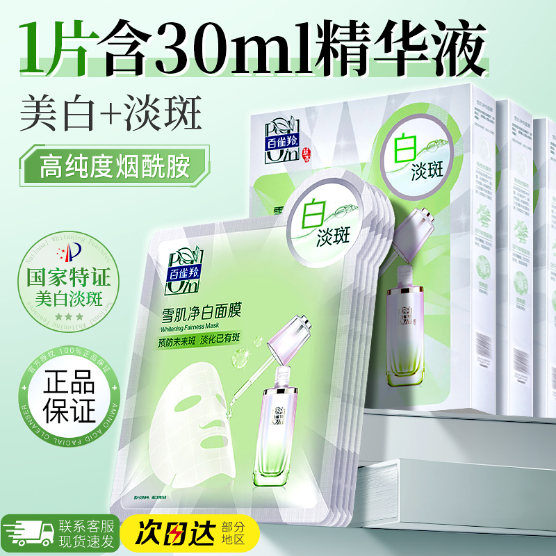 百雀羚雪肌净白面膜女补水保湿美白淡斑烟酰胺面膜官方旗舰店正品