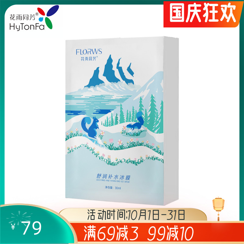 花雨同芳7°冷泉舒润补水冰膜保湿晒后修护收缩毛孔蚕丝面膜女5片