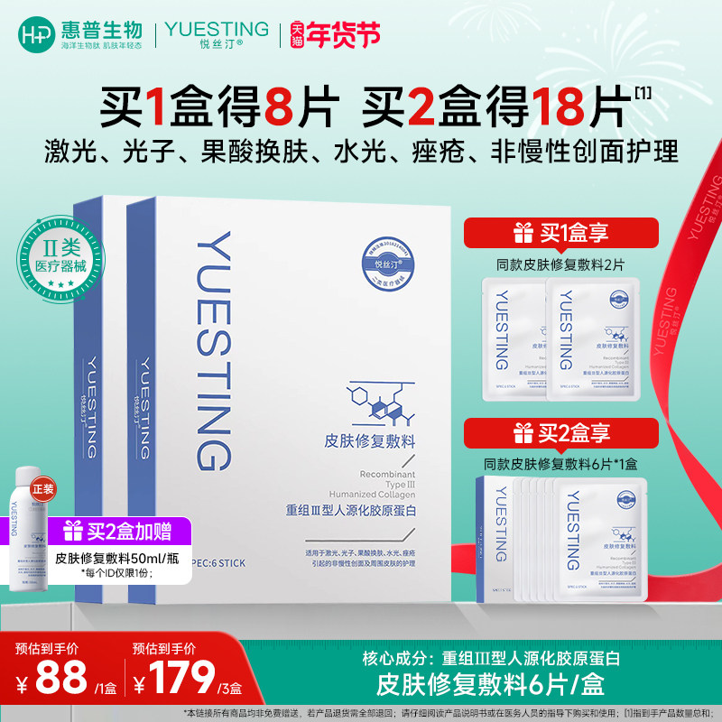 悦丝汀医用胶原蛋白修复敷料械字号水光创面痤疮护理非面膜6片/盒
