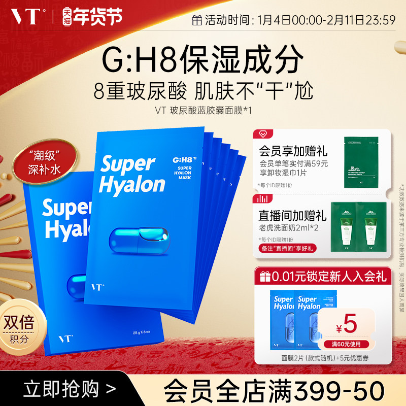 VT薇缔玻尿酸蓝胶囊面膜补水保湿服帖柔软膜布滋润肌肤正品官方店