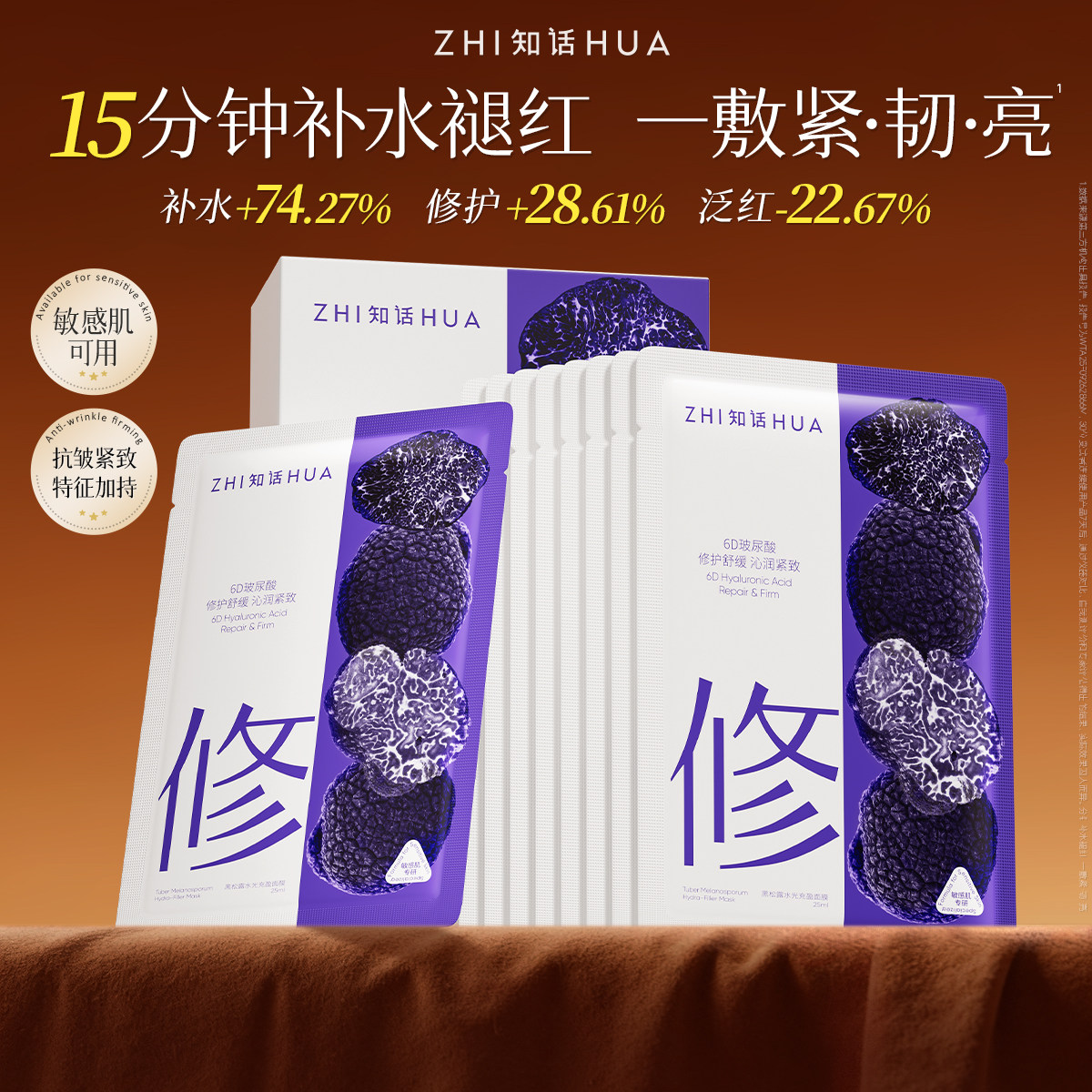 知话黑松露水光充盈面膜补水舒缓保湿修护透亮紧致抗皱滋润10片装