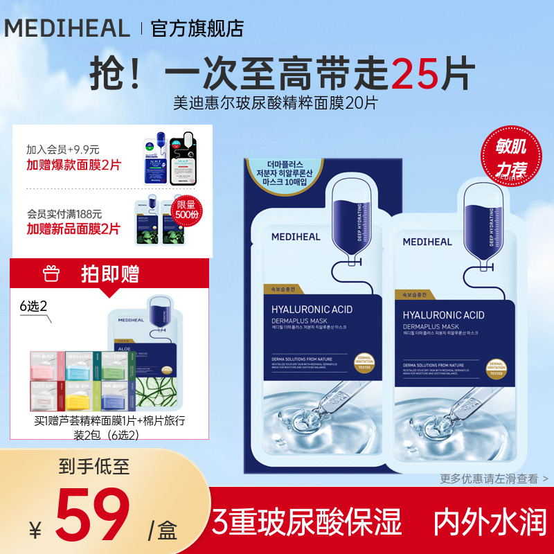 【重磅新品】美迪惠尔官方旗舰店玻尿酸精粹面膜20片补水保湿低敏