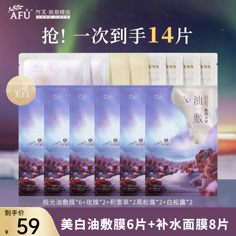 阿芙面膜14片组合 极光美白淡斑修护油敷膜6片+补水保湿面膜8片